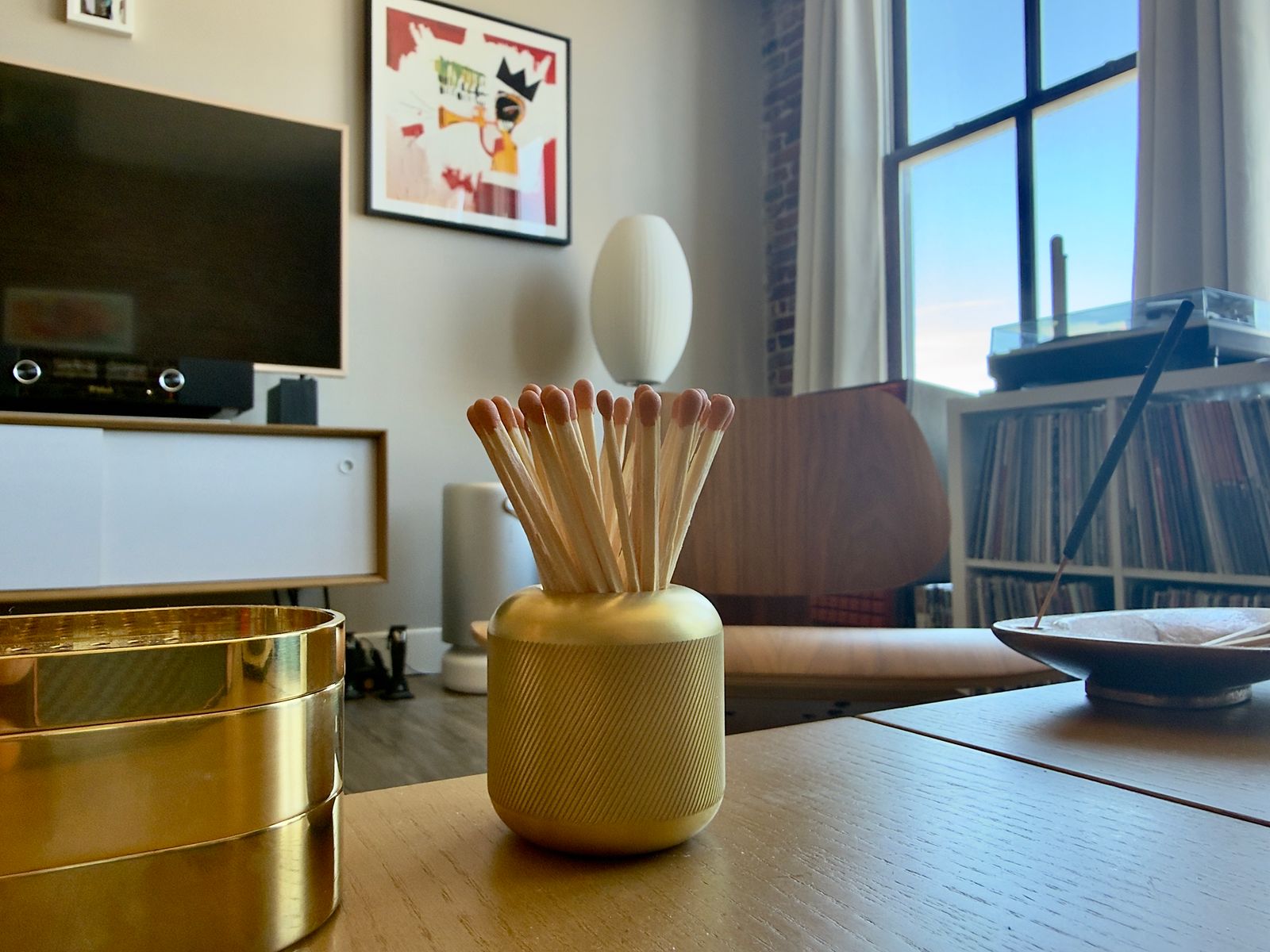 The Match Striker is destined to become central to your combustion-focused rituals. Whether you're setting a mood with incense, creating ambience with candles, or building a mighty blaze – it all starts with a flick of the wrist. Crafted from carbon steel with electroplated black zinc, the Match Striker is surprisingly dense and serves as a nice anchor against which to create a spark. The exterior surface features a deep knurling pattern, which provides the necessary friction to bring it all together.