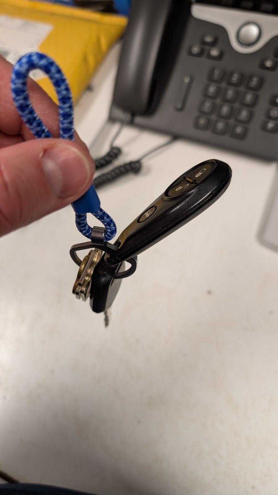 Modern life is perilous. The Rope Split Ring can reduce the risk by keeping hold of all your keys and clip-ons — without costing you your cuticles. With an extended tab for opposing digital force, the Rope Split Ring opens with ease, transforming the task of populating your keyring from a dreaded chore to an act of careful curation. It hangs suspended at the end of a grabbable, twirlable woven rope — available in Cornflower Blue, Monarch Orange, Slate Gray, and Black & White. An extended rope variant for hanging around your wrist or looping onto your bag is also available in Long Slate Gray. Perfect for sharing access with friends, keeping the house keys separate, or just making your personal set ready to grab and go, the Rope Split Ring is a colorful, cuticle-safe home for all your can’t-lose keys.