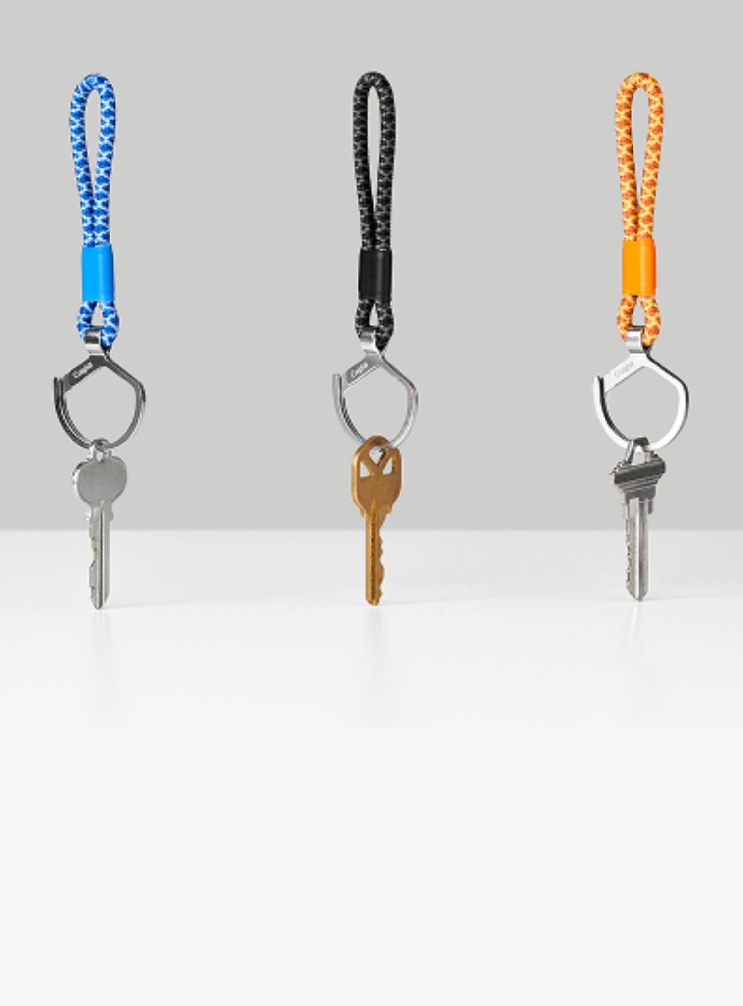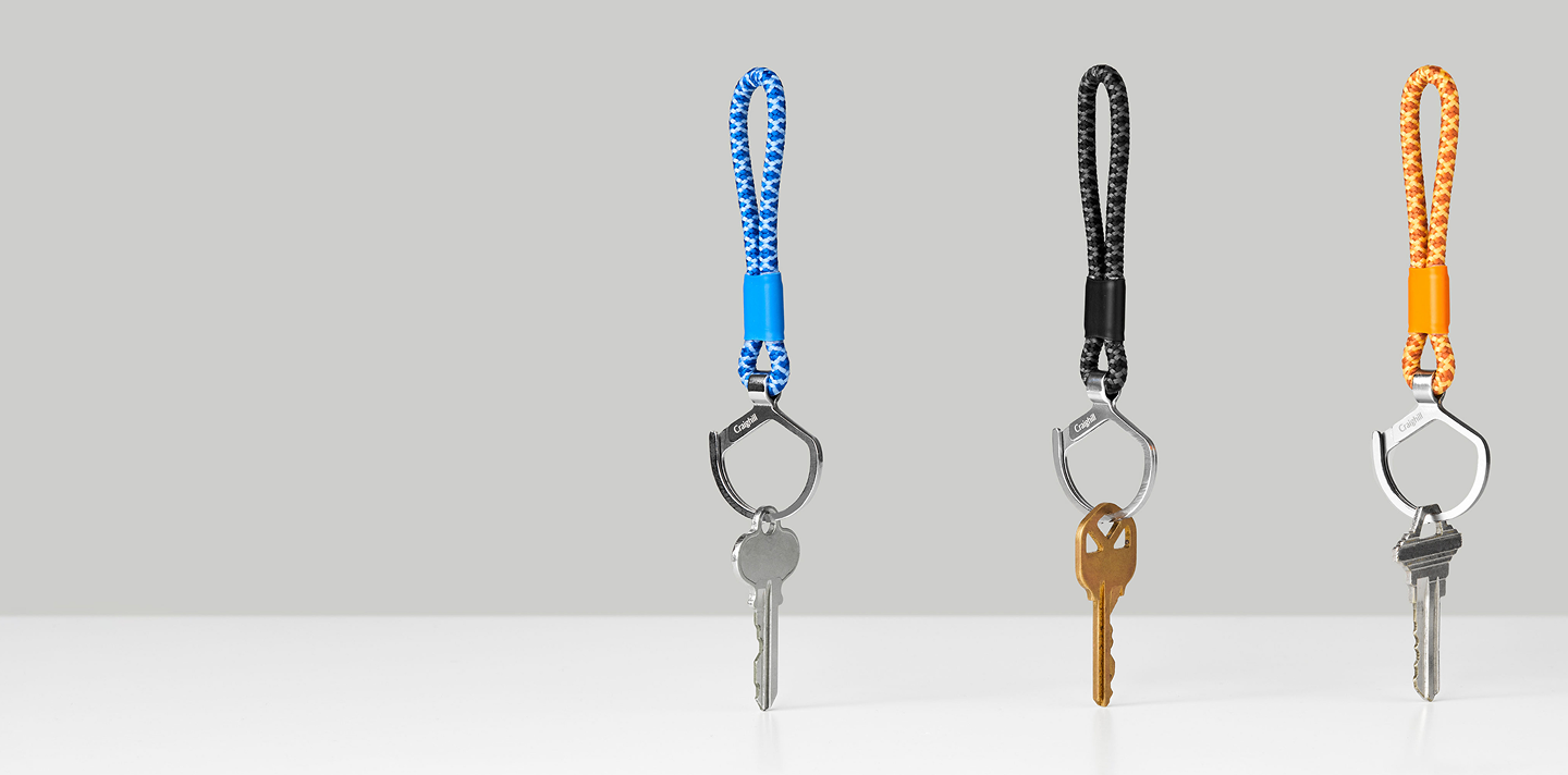 Modern life is perilous. The Rope Split Ring can reduce the risk by keeping hold of all your keys and clip-ons — without costing you your cuticles. With an extended tab for opposing digital force, the Rope Split Ring opens with ease, transforming the task of populating your keyring from a dreaded chore to an act of careful curation. It hangs suspended at the end of a grabbable, twirlable woven rope — available in Cornflower Blue, Monarch Orange, Slate Gray, and Black & White. An extended rope variant for hanging around your wrist or looping onto your bag is also available in Long Slate Gray. Perfect for sharing access with friends, keeping the house keys separate, or just making your personal set ready to grab and go, the Rope Split Ring is a colorful, cuticle-safe home for all your can’t-lose keys.