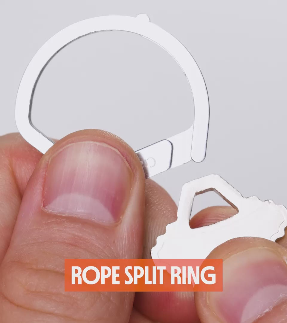 Traditional split rings are stiff, frustrating, and hard on your fingernails. The Rope Split Ring uses an easy-open tab that simplifies adding or removing keys.
