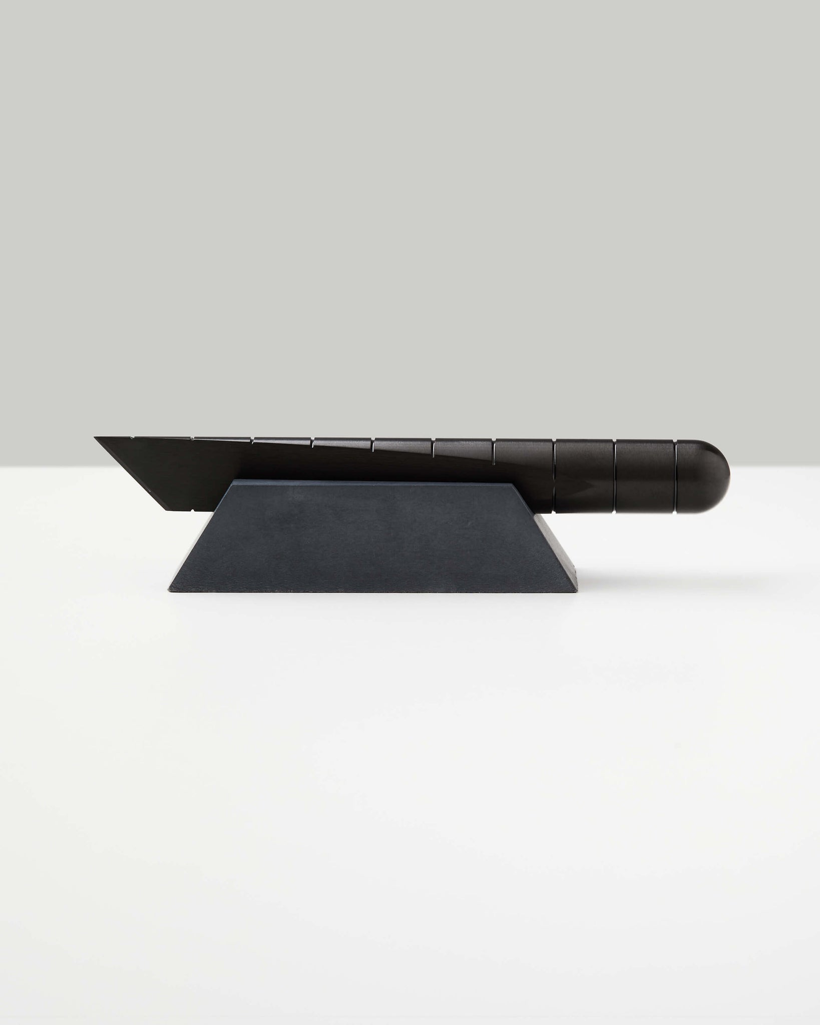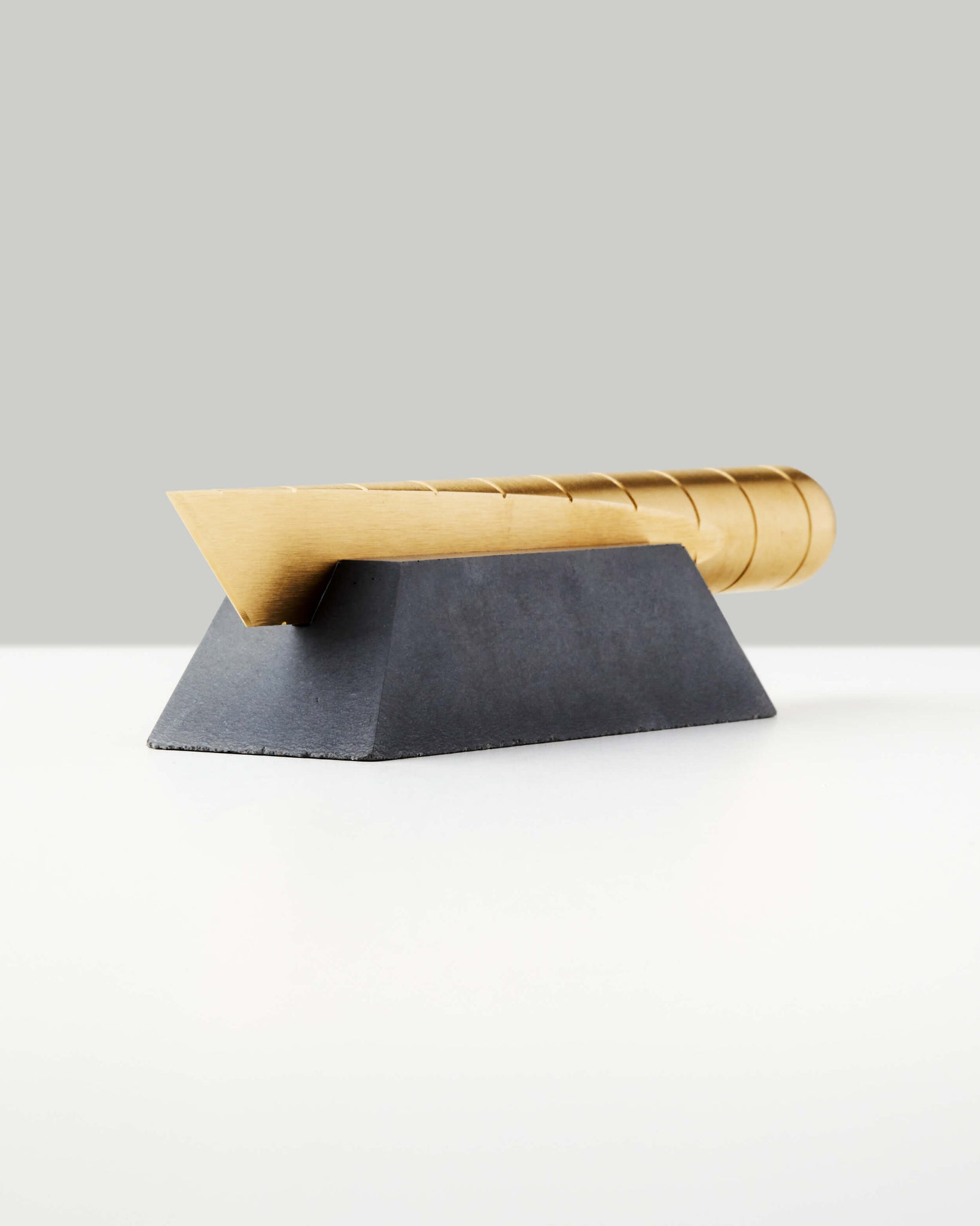 A perfect resting place for your favorite office cutting tool. The Desk Knife Plinth consists of a pyramidal base, individually cast in pigmented concrete, with a void that secures the knife along its center of mass.
