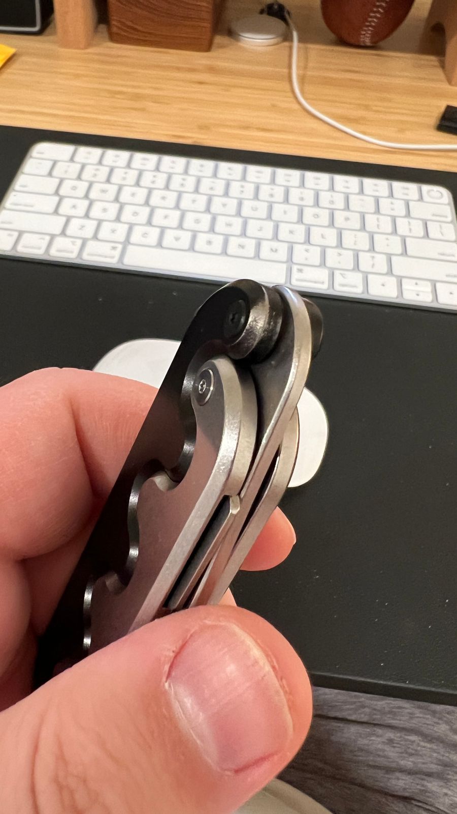 Formed entirely of stone washed and black PVD-coated stainless steel, the Sidewinder boasts a heft that feels authoritative in the hand, but never unwieldy. It’s perfectly pocketable, but remains equally content to be displayed on a desk, a shelf, or a mantle, proudly soaking in the wonder and admiration its curious form will undoubtedly attract.